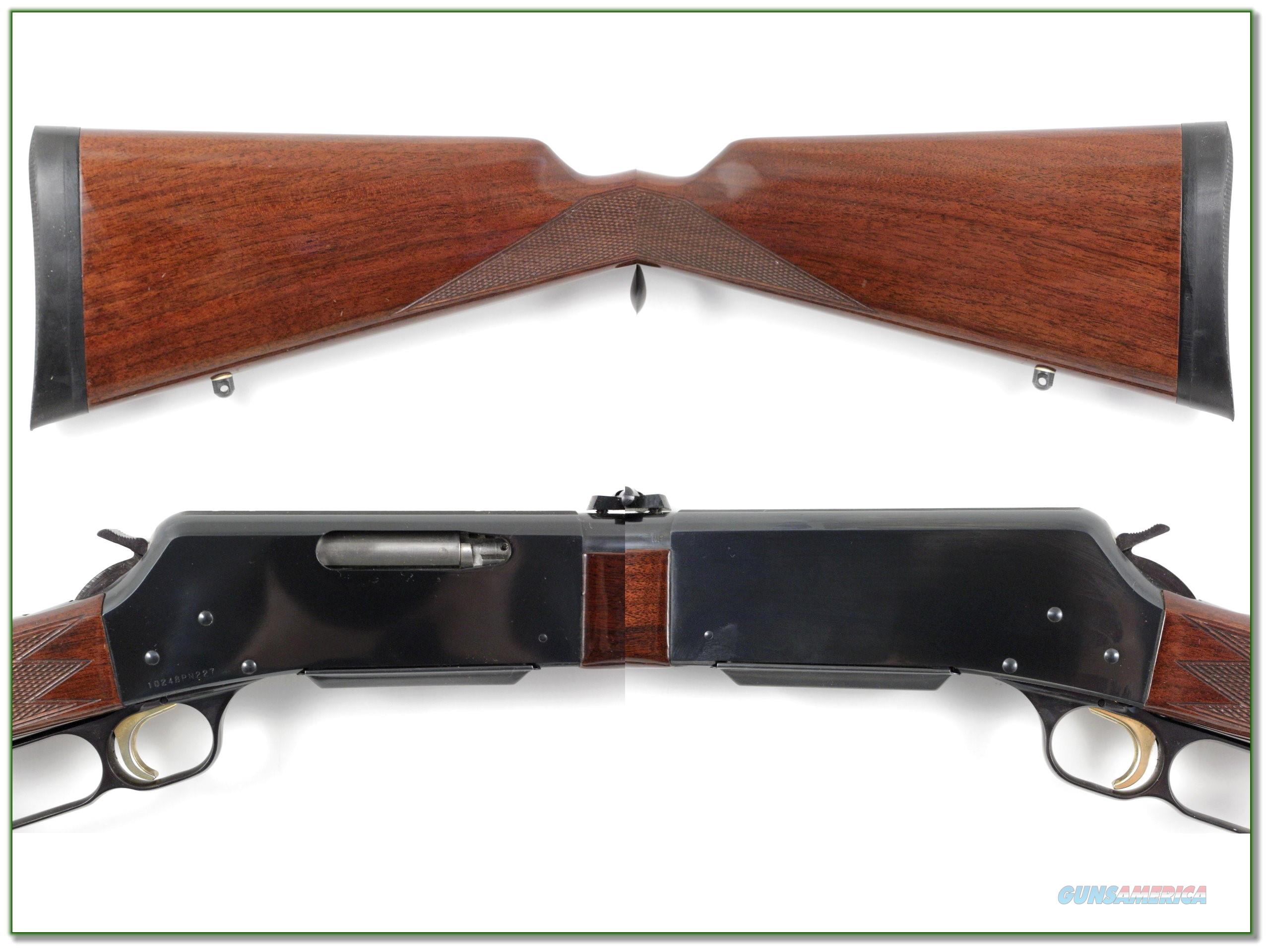LSB#: 110912HM1 Make: Browning Model: 81BLR Serial Number: 022707PZ127 Year of Manufacture: 1971 Caliber:.243 Win. Action Type: Lever Action, Removable Magazine Markings: The left side of the barrel is marked 'Browning Arms Company Morgan Utah & Montreal P.Q. / Made In Japan / NP'. The serial number is found on the right side of the receiver along the lower edge. The right side of the barrel is marked “Model 81, BLR Caliber.243 Only / Patent No.
